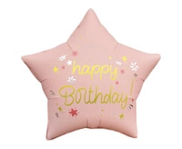 Balon foliowy Happy Birthday, gwiazda matowa j. różowa 18"