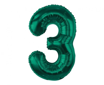 Balon foliowy B&C, cyfra 3, zieleń butelkowa, 85 cm