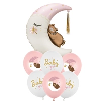 Zestaw balonów KSIĘŻYC Z MISIEM różowy - opcja hel
