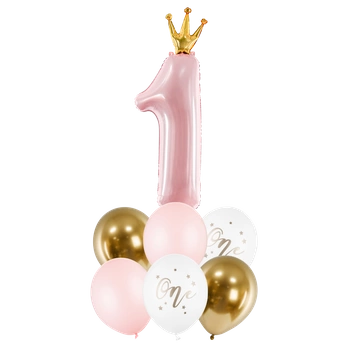 Zestaw balonów KSIĘŻYC Z MISIEM różowy - opcja hel