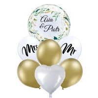 Zestaw balonów z helem na ślub Mr. & Mrs. Natural