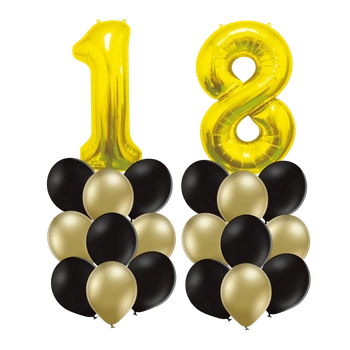 Bukiet balonów na 18 URODZINY, złoto-czarna klasyka - opcja hel