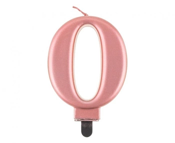 Świeczka B&C cyferka 0, metalik różowo-złota, 8,0 cm