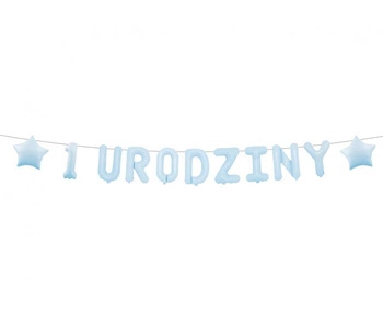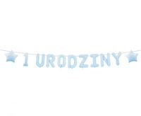 Girlanda papierowa "1 URODZINY", niebieska, 1,5 m.