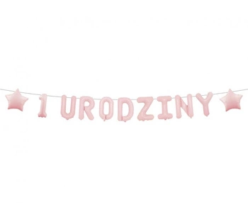 Girlanda papierowa "1 URODZINY", różowa, 1,5 m.