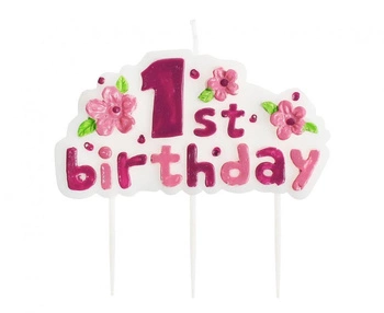 Świeczka na pikerach "1st Birthday", różowa