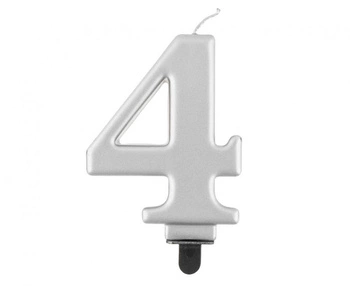 Świeczka B&C cyferka 4, metalik srebrna, 8,0 cm