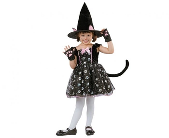 Zestaw Kotek Czarownica (kapelusz, sukienka z ogonem, rękawiczki), rozm. 92/104 cm