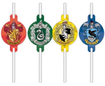 Rurki (słomki) papierowe z medalionem Harry Potter Hogwarts Houses, 4 szt.