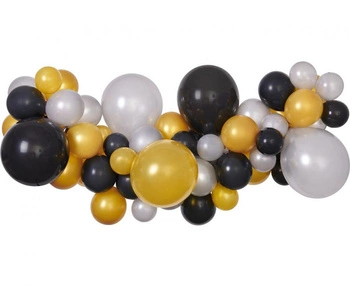 Girlanda balonowa DIY Srebrno-złoto-czarna, 65 szt.