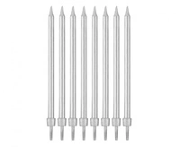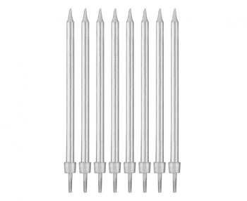 #SU Świeczki urodzinowe B&C z podstawkami, srebrne, 10 cm, 8 szt.