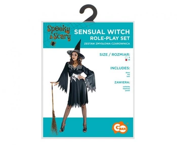 Zestaw dla dorosłych Zmysłowa Czarownica (sukienka, kapelusz, pasek), rozm. S