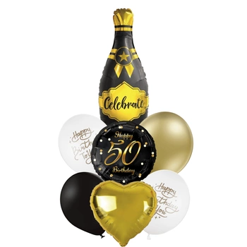 Bukiet balonów na 50 URODZINY z szampanem - opcja hel