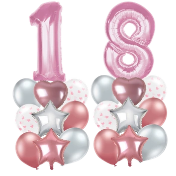 Bukiet balonów na 18 URODZINY, różowo-srebrny - opcja hel
