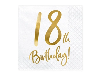 Serwetki 18th Birthday, biały, 33x33cm (1 op. / 20 szt.)