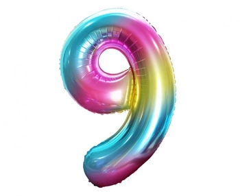 Balon foliowy B&C Cyfra 9, tęczowa, 85 cm