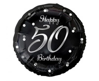 Balon foliowy B&C Happy 50 Birthday, czarny, nadruk srebrny, 18"