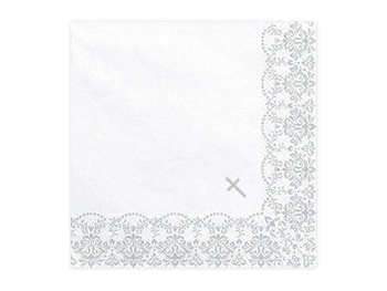 Serwetki Komunijne z ornamentem, 33x33cm, srebrny (1 op. / 20 szt.)