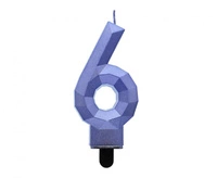 Świeczka cyferka 6 - Diament, metalik ciemnoniebieski, 7.6 cm