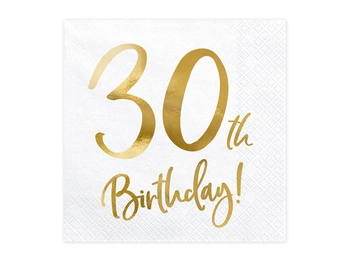 Serwetki 30th Birthday, biały, 33x33cm (1 op. / 20 szt.)