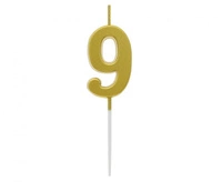 Świeczka piker B&C cyferka 9, metaliczna złota, 9.5x2.3 cm