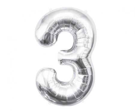 Balon foliowy B&C Cyfra 3, srebrna, 85 cm