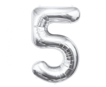 BALON FOLIOWY CYFRA 5, SREBRNA Rozmiar po napompowaniu: 85 cm Ilość: 1 szt. Balony są przeznaczone do napełnienia helem. Napełnienie ich powietrzem spowoduje, że balony nie będą się unosić. Balony nie są napełnione helem ani powietrzem. Balon posiada zawór samozamykający.