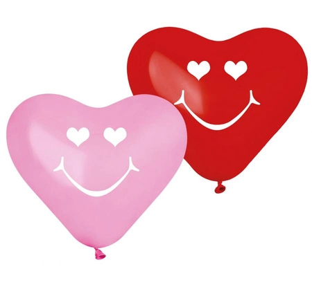 Balony lateksowe Gemar z motywem uśmiechniętych serc stanowią kluczowy dodatek do romantycznej aranżacji. Łączą w sobie kolory różowy i czerwony, prezentując się w delikatnym, pastelowym stylu.
