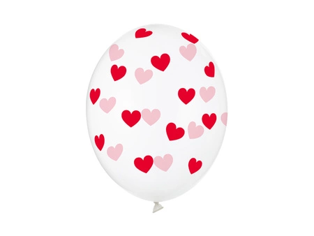 Balony lateksowe Serduszka czerwone przezroczysty 30 cm 6 szt. PartyDeco