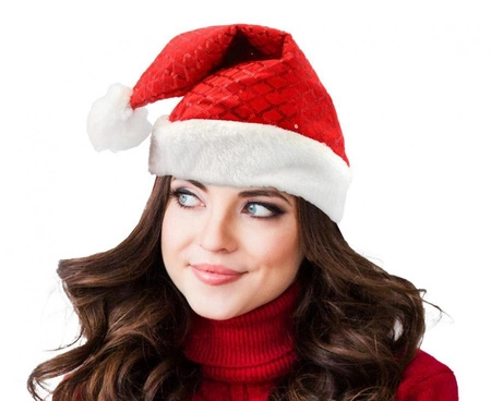 Czapka Mikołaja czerwona z błyszczącymi cekinami 30 x 42 cm