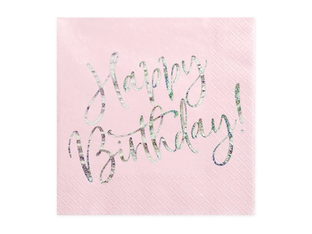 Serwetki Happy Birthday, jasny pudrowy róż, 33x33cm (1 op. / 20 szt.)