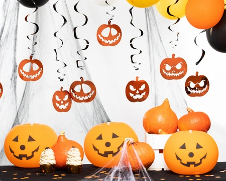 - Ożyw swoją halloweenową dekorację sali dyniami w intensywnym pomarańczowym kolorze. Efektownie poruszają się przy każdym ruchu powietrza, przyciągając wzrok gości. Dodaj do koszyka i sprawdź efekt na żywo.