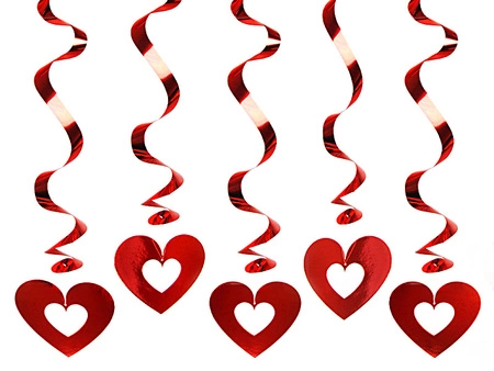 Świderki Serca czerwone 60 cm 5 szt. PartyDeco