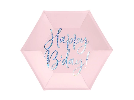Talerzyki Happy B'day!, jasny pudrowy róż, 20cm (1 op. / 6 szt.)