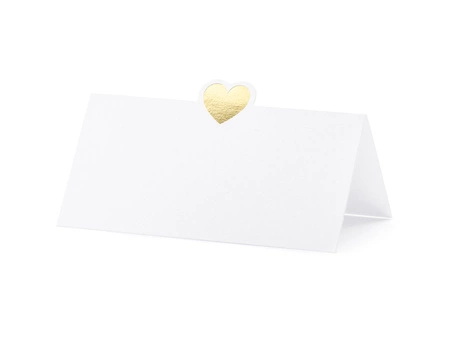 Wizytówki na stół - Serce, złoty, 10x5cm (1 op. / 10 szt.)
