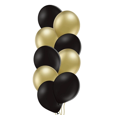- Zestaw 9 balonów lateksowych: 5 złotych + 4 czarne. Idealny na urodziny, jubileusze, wieczory panieńskie i eventy firmowe. Możliwość napełnienia helem lub zamówienia butli z helem. Odbiór osobisty już w 3 godziny lub dowóz (Poznań i okolice)